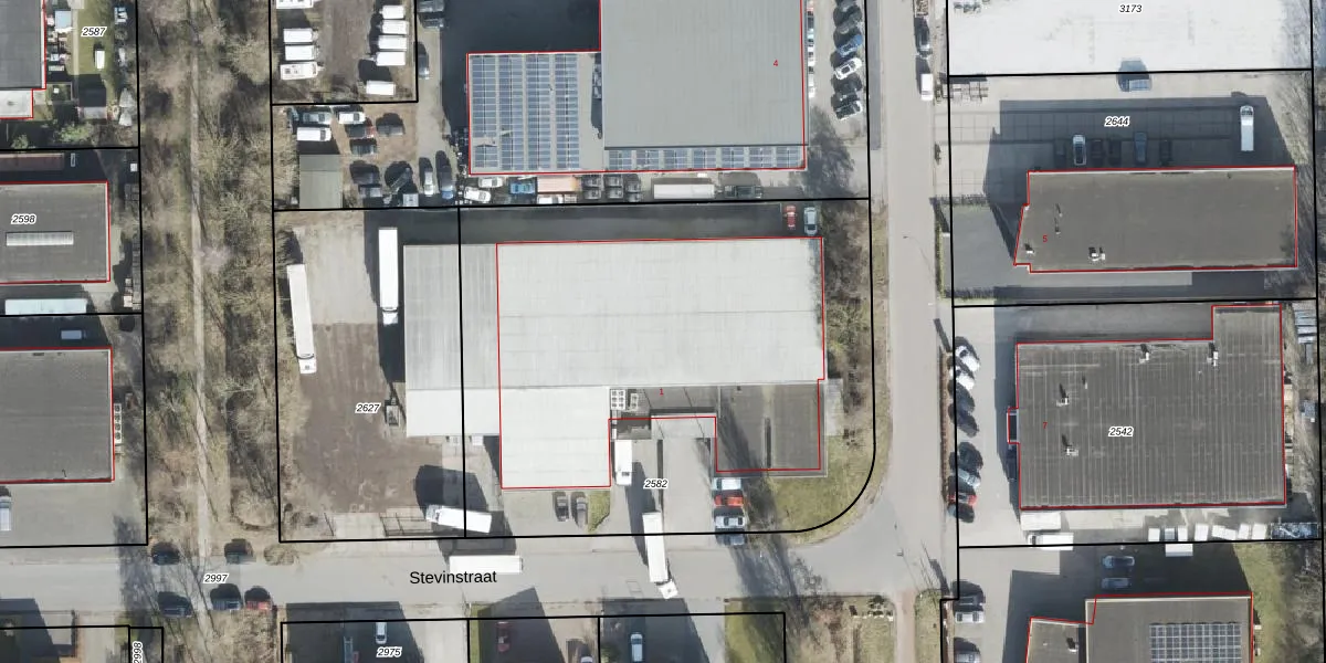 Het perceel waarop Stevinstraat 1 staat heeft een oppervlakte van 3065 m². Dit is een zeer groot perceel. De perceeloppervlakte wordt geregistreerd door het Kadaster. Gedetailleerde informatie over de maten van dit perceel kunt u vinden in het rapport Kadastrale kaart met maatvoering van Stevinstraat 1.