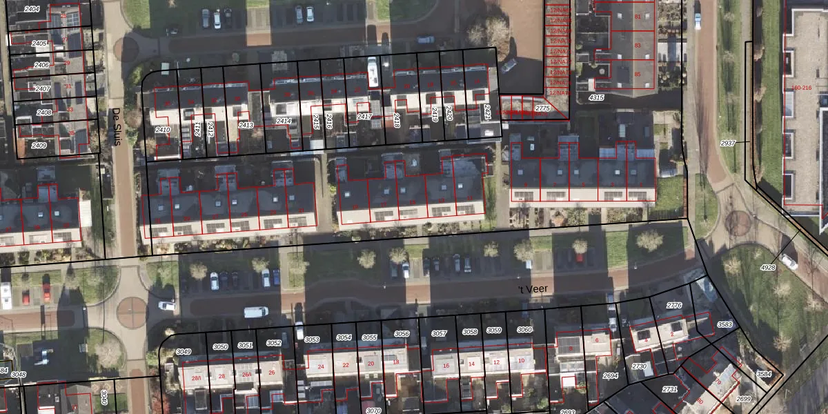 Het perceel waarop 't Veer 15 staat heeft een oppervlakte van 7396 m². Dit is een zeer groot perceel. De perceeloppervlakte wordt geregistreerd door het Kadaster. Gedetailleerde informatie over de maten van dit perceel kunt u vinden in het rapport Kadastrale kaart met maatvoering van 't Veer 15.