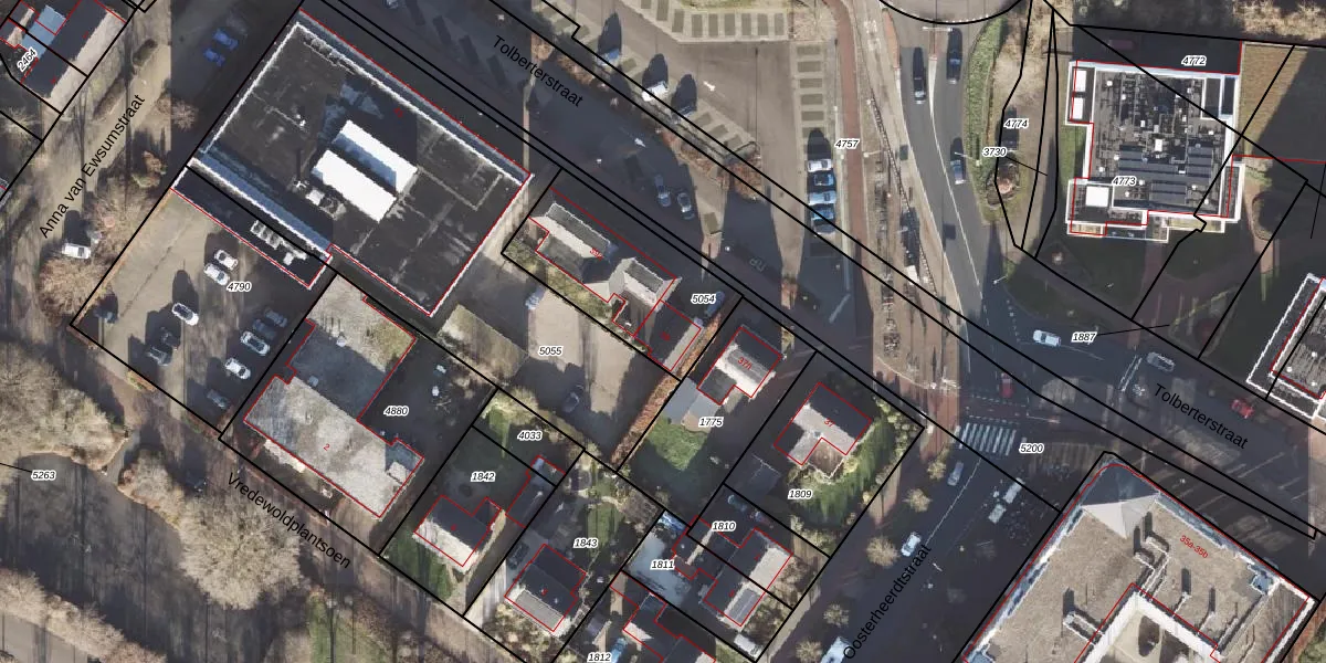 Het perceel waarop Tolberterstraat 39 staat heeft een oppervlakte van 530 m². Dit is een groot perceel. De perceeloppervlakte wordt geregistreerd door het Kadaster. Gedetailleerde informatie over de maten van dit perceel kunt u vinden in het rapport Kadastrale kaart met maatvoering van Tolberterstraat 39.