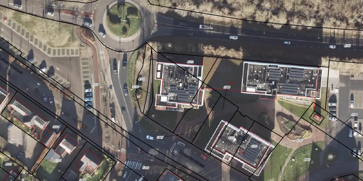 Het perceel waarop Tolberterstraat 42-K staat heeft een oppervlakte van 734 m². Dit is een groot perceel. De perceeloppervlakte wordt geregistreerd door het Kadaster. Gedetailleerde informatie over de maten van dit perceel kunt u vinden in het rapport Kadastrale kaart met maatvoering van Tolberterstraat 42-K.