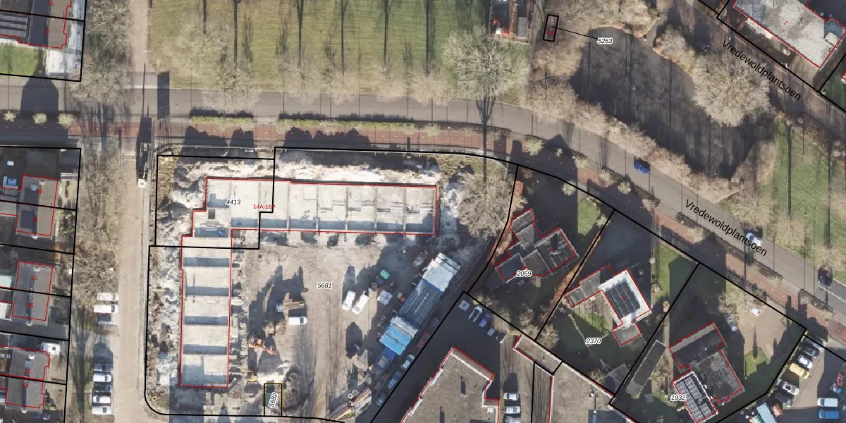Het perceel waarop Van Panhuyslaan 14-M staat heeft een oppervlakte van 4013 m². Dit is een zeer groot perceel. De perceeloppervlakte wordt geregistreerd door het Kadaster. Gedetailleerde informatie over de maten van dit perceel kunt u vinden in het rapport Kadastrale kaart met maatvoering van Van Panhuyslaan 14-M.