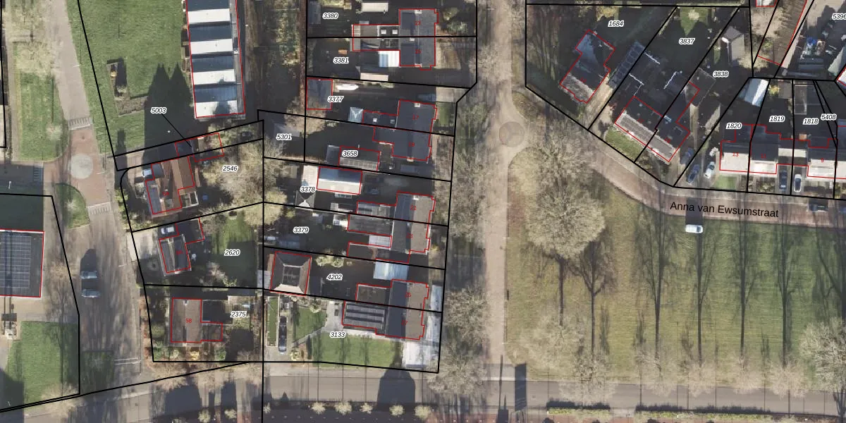 Het adres ligt op het perceel LEE01-D-3378, dat zich in de kadastrale gemeente Leek bevindt. Het perceel is kleiner dan gemiddeld in Leek. Het perceel is 479 m² groot, terwijl het gemiddelde ligt op 5187,56 m². Het grootste perceel in de kadastrale gemeente is 72,3 ha. Het kleinste perceel heeft een oppervlakte van 0 m². Dit is het enige adres dat aanwezig is op het perceel. De huidige grenzen van het perceel zijn digitaal in de Basisregistratie Kadaster (BRK) geregistreerd op 03-09-2010.