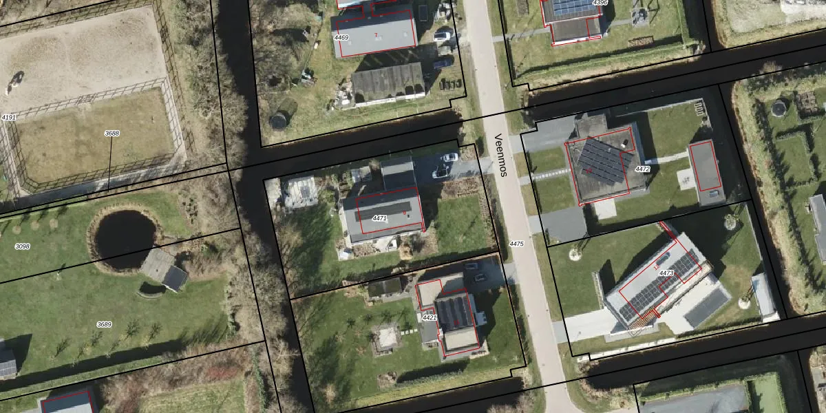 Het perceel waarop het adres ligt is LEE01-E-4471. De afkorting 'LEE01' staat voor kadastrale gemeente Leek. Het perceel is kleiner dan gemiddeld in Leek. Het perceel is 1505 m² groot, terwijl het gemiddelde ligt op 5183,38 m². De grootste perceeloppervlakte in de kadastrale gemeente is 72,3 ha. De kleinste oppervlakte bedraagt 0 m². Dit is het enige adres dat aanwezig is op het perceel. De huidige grenzen van het perceel zijn digitaal in de Basisregistratie Kadaster (BRK) geregistreerd op 29-11-2019.