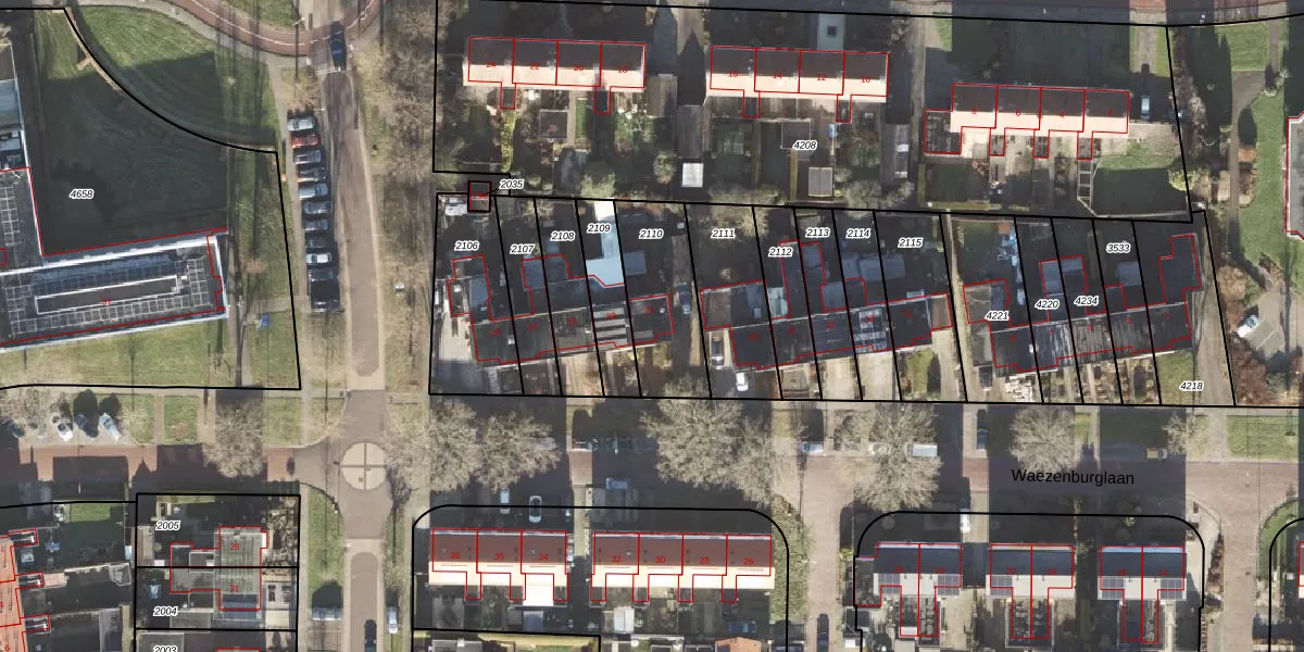 Gebruik de zoekbalk of klik op een perceel voor informatie over de adressen binnen dit perceel.