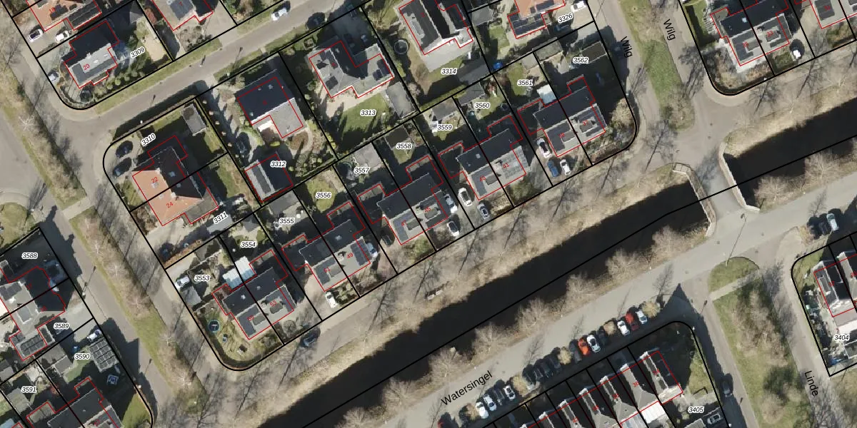 Het perceel waarop Watersingel 45 staat heeft een oppervlakte van 317 m². Dit is een groot perceel. De perceeloppervlakte wordt geregistreerd door het Kadaster. Gedetailleerde informatie over de maten van dit perceel kunt u vinden in het rapport Kadastrale kaart met maatvoering van Watersingel 45.