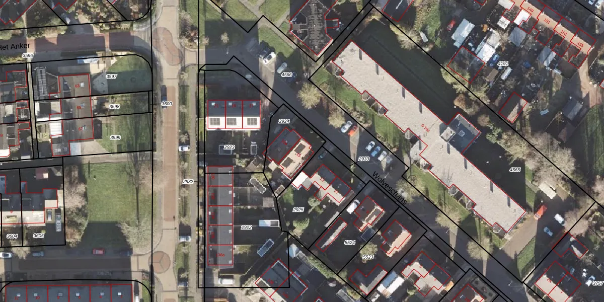 Het perceel waarop Wolveschans 15 staat heeft een oppervlakte van 348 m². Dit is een groot perceel. De perceeloppervlakte wordt geregistreerd door het Kadaster. Gedetailleerde informatie over de maten van dit perceel kunt u vinden in het rapport Kadastrale kaart met maatvoering van Wolveschans 15.