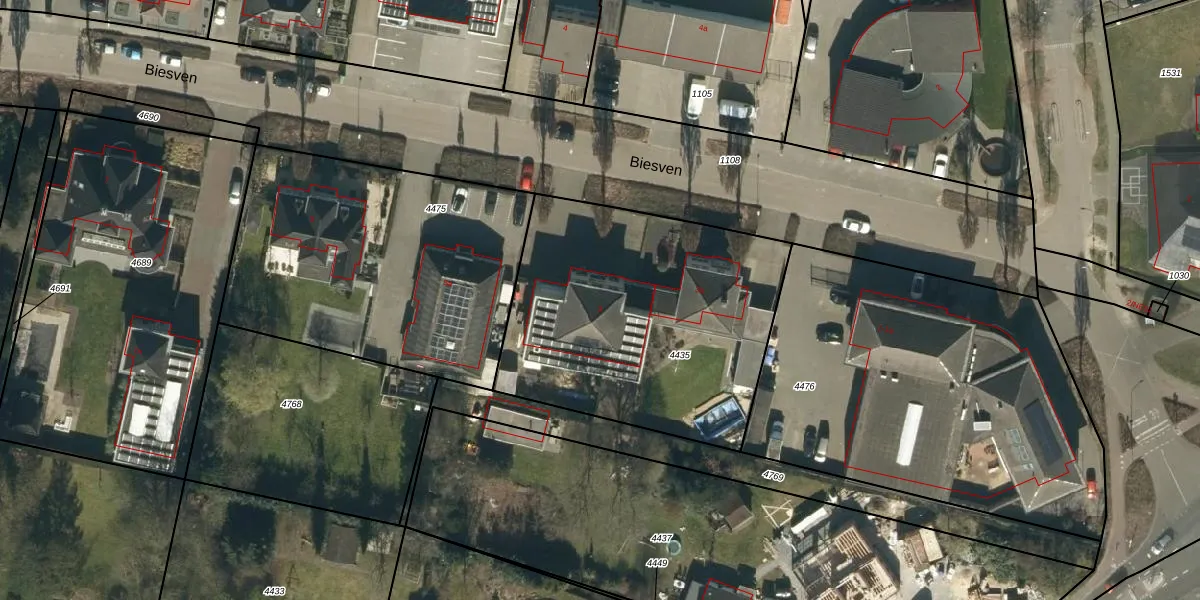 Het perceel waarop Biesven 3 staat heeft een oppervlakte van 1500 m². Dit is een zeer groot perceel. De perceeloppervlakte wordt geregistreerd door het Kadaster. Gedetailleerde informatie over de maten van dit perceel kunt u vinden in het rapport Kadastrale kaart met maatvoering van Biesven 3.