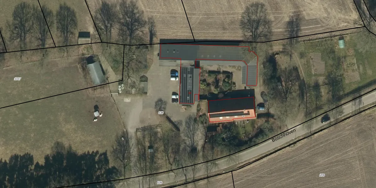 Het perceel waarop Boschhoven 54 staat heeft een oppervlakte van 1,2 ha. Dit is een zeer groot perceel. De perceeloppervlakte wordt geregistreerd door het Kadaster. Gedetailleerde informatie over de maten van dit perceel kunt u vinden in het rapport Kadastrale kaart met maatvoering van Boschhoven 54.