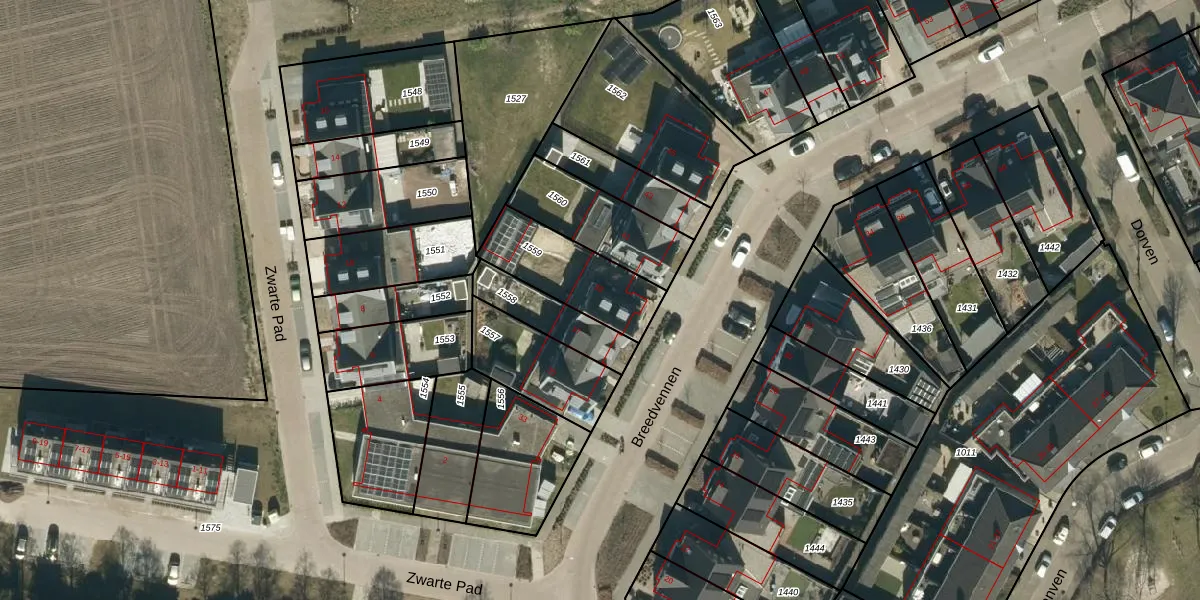 Het perceel waarop Breedvennen 39 staat heeft een oppervlakte van 304 m². Dit is een groot perceel. De perceeloppervlakte wordt geregistreerd door het Kadaster. Gedetailleerde informatie over de maten van dit perceel kunt u vinden in het rapport Kadastrale kaart met maatvoering van Breedvennen 39.