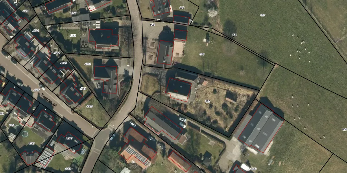 Het perceel waarop het adres ligt is LDE01-G-822. De afkorting 'LDE01' staat voor kadastrale gemeente Leende. Het perceel is 1570 m² groot. Dat is kleiner dan de gemiddelde perceeloppervlakte in Leende, dat op 1,2 ha ligt. Het kleinste perceel in de kadastrale gemeente is 1 m² groot. De grootste perceeloppervlakte is 6,90 km². Dit is het enige adres dat aanwezig is op het perceel. De laatste wijziging in het de Basisregistratie Kadaster (BRK) was op 12-07-2011.