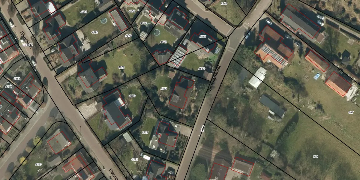 Het perceel waarop het adres ligt is LDE01-A-4552. De afkorting 'LDE01' staat voor kadastrale gemeente Leende. Het perceel is 850 m² groot. Dat is kleiner dan de gemiddelde perceeloppervlakte in Leende, dat op 1,2 ha ligt. De grootste perceeloppervlakte in de kadastrale gemeente is 6,90 km². De kleinste oppervlakte bedraagt 1 m². Er zijn geen andere adressen aanwezig op het perceel. In de Basisregistratie Kadaster (BRK) werden de grenzen van het perceel geregistreerd op 25-10-2011.