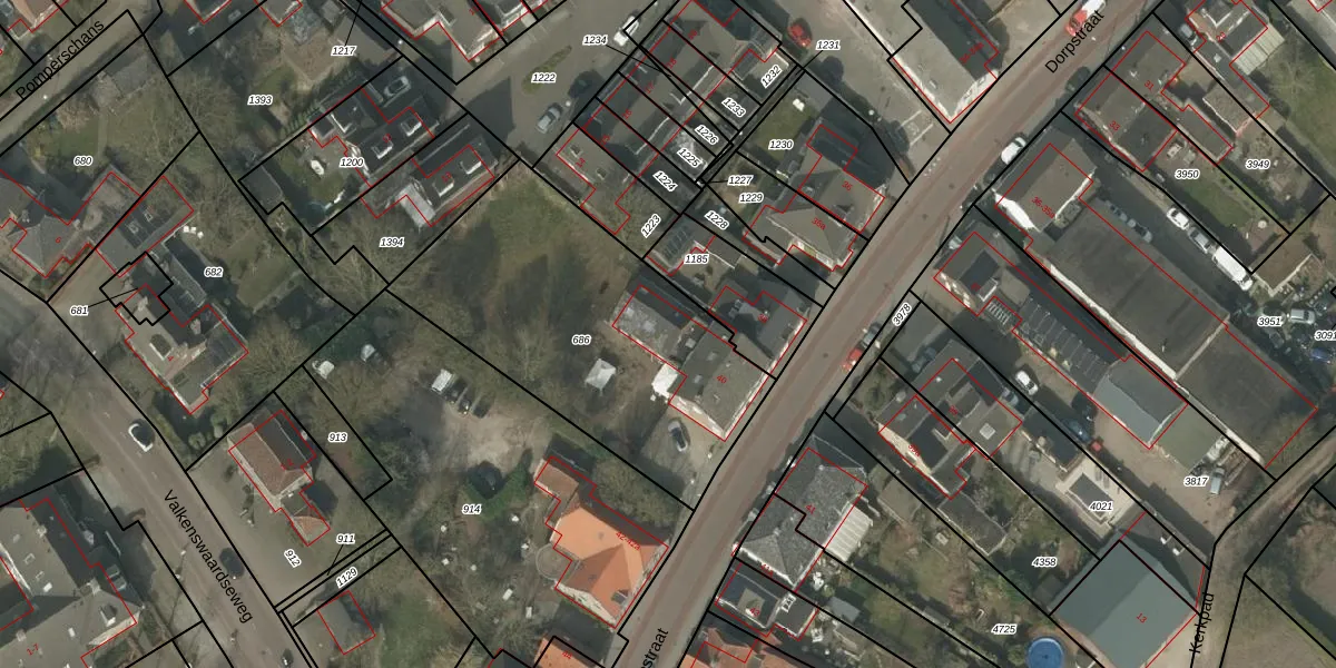 Het perceel waarop Dorpstraat 40-a staat heeft een oppervlakte van 1380 m². Dit is een zeer groot perceel. De perceeloppervlakte wordt geregistreerd door het Kadaster. Gedetailleerde informatie over de maten van dit perceel kunt u vinden in het rapport Kadastrale kaart met maatvoering van Dorpstraat 40-a.