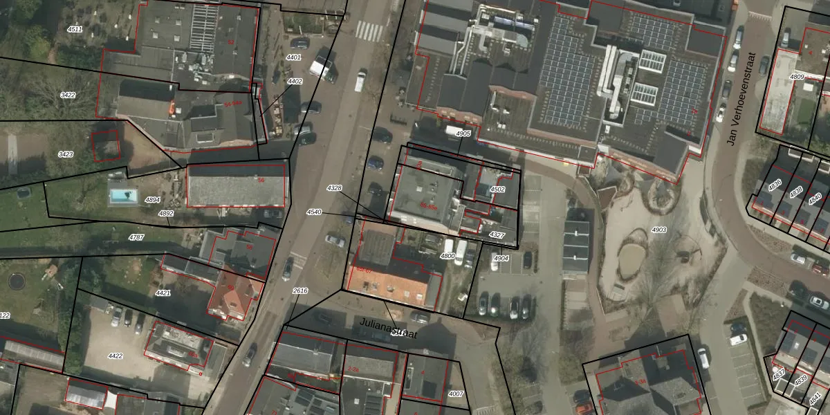 Het perceel waarop het adres ligt is LDE01-A-4327. De afkorting 'LDE01' staat voor kadastrale gemeente Leende. Het perceel is kleiner dan gemiddeld in Leende. Het perceel is 369 m² groot, terwijl het gemiddelde ligt op 1,2 ha. Het kleinste perceel in de kadastrale gemeente is 1 m² groot. De grootste perceeloppervlakte is 6,90 km². Op het perceel liggen in totaal 6 adressen. De laatste wijziging in het de Basisregistratie Kadaster (BRK) was op 14-04-2022.