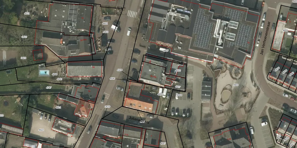 Het perceel waarop het adres ligt is LDE01-A-4327. De afkorting 'LDE01' staat voor kadastrale gemeente Leende. Het perceel is kleiner dan gemiddeld in Leende. Het perceel is 369 m² groot, terwijl het gemiddelde ligt op 1,2 ha. Het kleinste perceel in de kadastrale gemeente is 1 m² groot. De grootste perceeloppervlakte is 6,90 km². Er zijn 6 adressen aanwezig op het perceel. In de Basisregistratie Kadaster (BRK) werden de grenzen van het perceel geregistreerd op 14-04-2022.