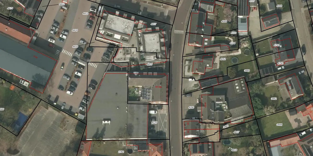Het perceel waarop het adres ligt is LDE01-A-4415. De afkorting 'LDE01' staat voor kadastrale gemeente Leende. Het perceel is kleiner dan gemiddeld in Leende. Het perceel is 929 m² groot, terwijl het gemiddelde ligt op 1,2 ha. Het kleinste perceel in de kadastrale gemeente is 1 m² groot. De grootste perceeloppervlakte is 6,90 km². Er zijn 5 adressen aanwezig op het perceel. De laatste wijziging in het de Basisregistratie Kadaster (BRK) was op 09-05-2005.