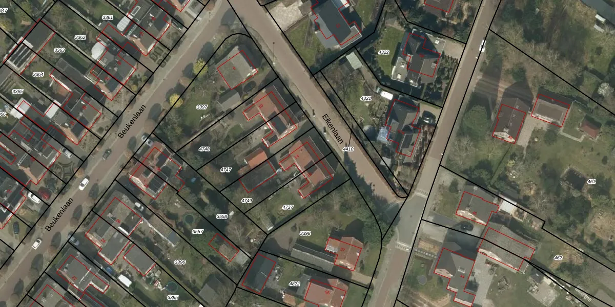 Eikenlaan 14 is gelegen op kadastraal perceel LDE01A4749. Deze kadastrale aanduiding is uniek en wordt gebruikt door het Kadaster om eigendomsrechten en andere zakelijke rechten vast te leggen. Het perceel maakt onderdeel uit van de kadastrale gemeente Leende.