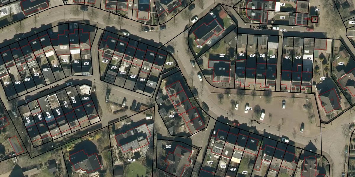 Het perceel waarop Flins 41 staat heeft een oppervlakte van 706 m². Dit is een groot perceel. De perceeloppervlakte wordt geregistreerd door het Kadaster. Gedetailleerde informatie over de maten van dit perceel kunt u vinden in het rapport Kadastrale kaart met maatvoering van Flins 41.
