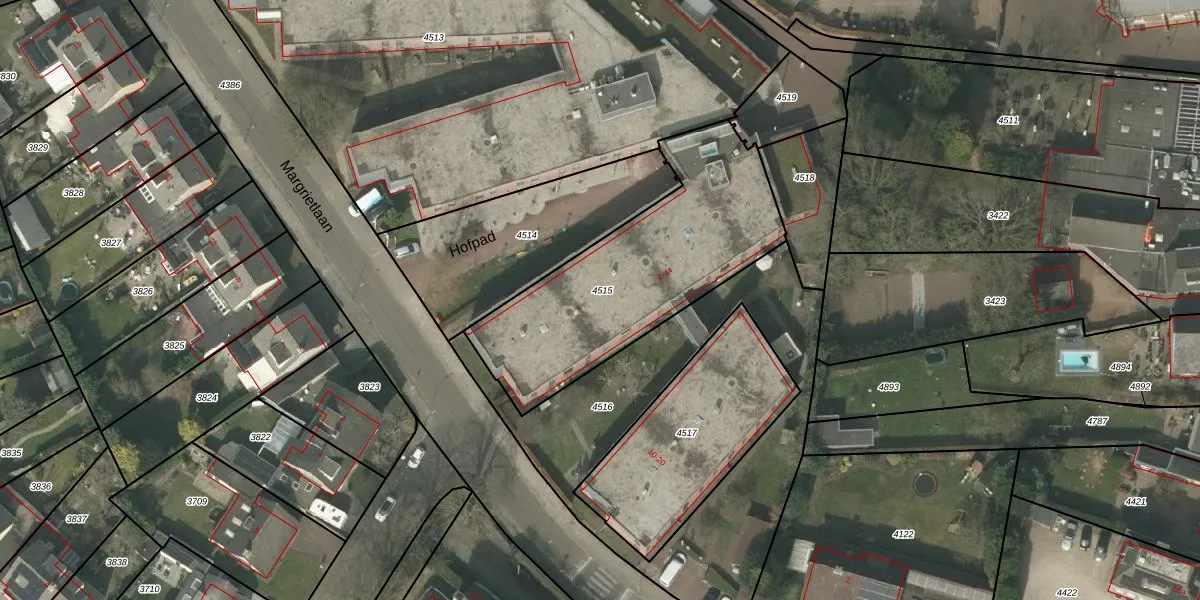 Het perceel waarop Hofpad 36 staat heeft een oppervlakte van 1042 m². Dit is een zeer groot perceel. De perceeloppervlakte wordt geregistreerd door het Kadaster. Gedetailleerde informatie over de maten van dit perceel kunt u vinden in het rapport Kadastrale kaart met maatvoering van Hofpad 36.