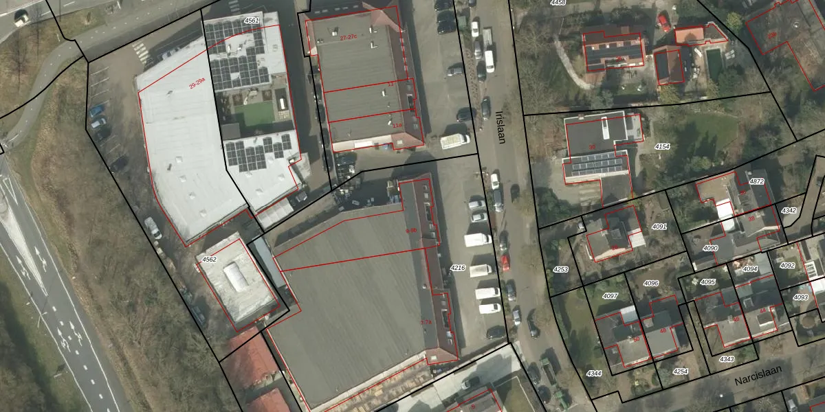 Irislaan 9-b is gelegen op kadastraal perceel LDE01A4216. Deze kadastrale aanduiding is uniek en wordt gebruikt door het Kadaster om eigendomsrechten en andere zakelijke rechten vast te leggen. Het perceel maakt onderdeel uit van de kadastrale gemeente Leende.