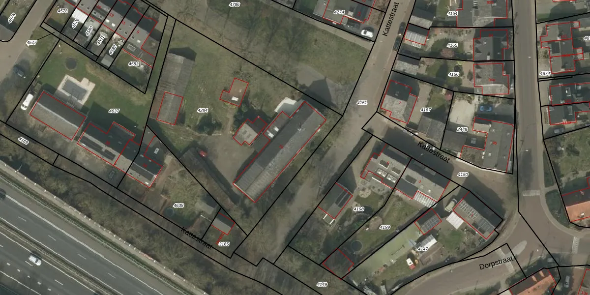 Kattestraat 16-b is gelegen op kadastraal perceel LDE01A4284. Deze kadastrale aanduiding is uniek en wordt gebruikt door het Kadaster om eigendomsrechten en andere zakelijke rechten vast te leggen. Het perceel maakt onderdeel uit van de kadastrale gemeente Leende.