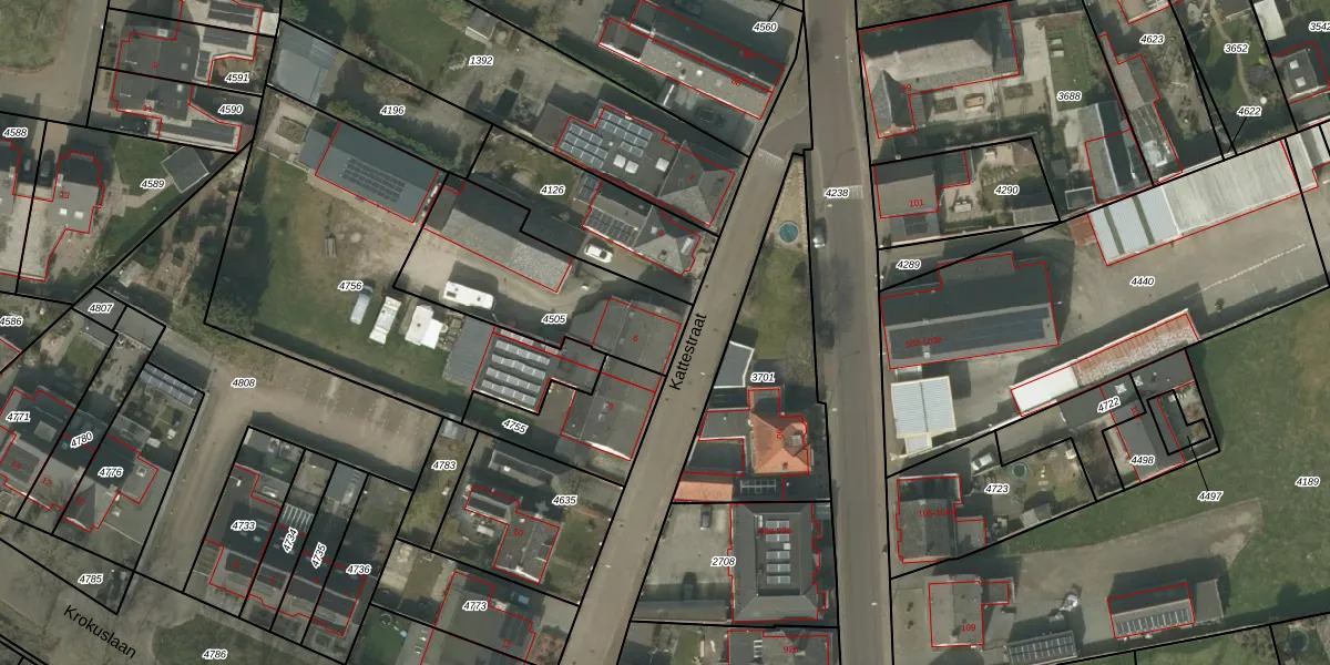 Kattestraat 6 is gelegen op kadastraal perceel LDE01A4505. Deze kadastrale aanduiding is uniek en wordt gebruikt door het Kadaster om eigendomsrechten en andere zakelijke rechten vast te leggen. Het perceel maakt onderdeel uit van de kadastrale gemeente Leende.