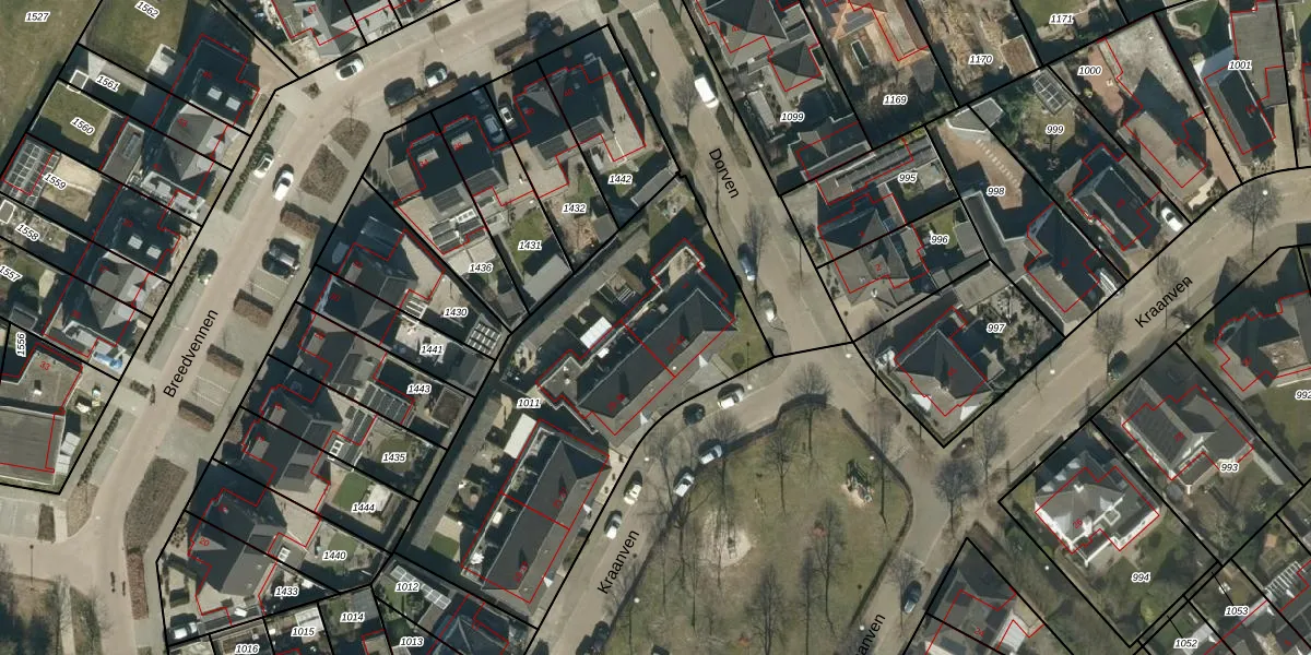 Het perceel waarop Kraanven 39 staat heeft een oppervlakte van 1706 m². Dit is een zeer groot perceel. De perceeloppervlakte wordt geregistreerd door het Kadaster. Gedetailleerde informatie over de maten van dit perceel kunt u vinden in het rapport Kadastrale kaart met maatvoering van Kraanven 39.