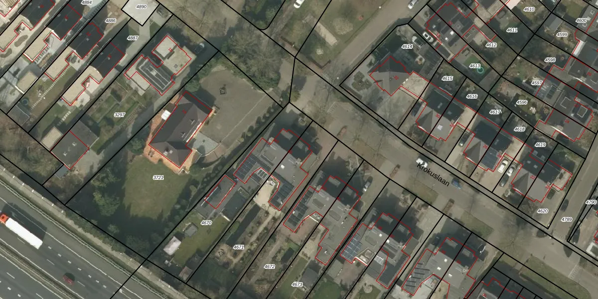 Het perceel waarop Krokuslaan 45 staat heeft een oppervlakte van 850 m². Dit is een groot perceel. De perceeloppervlakte wordt geregistreerd door het Kadaster. Gedetailleerde informatie over de maten van dit perceel kunt u vinden in het rapport Kadastrale kaart met maatvoering van Krokuslaan 45.