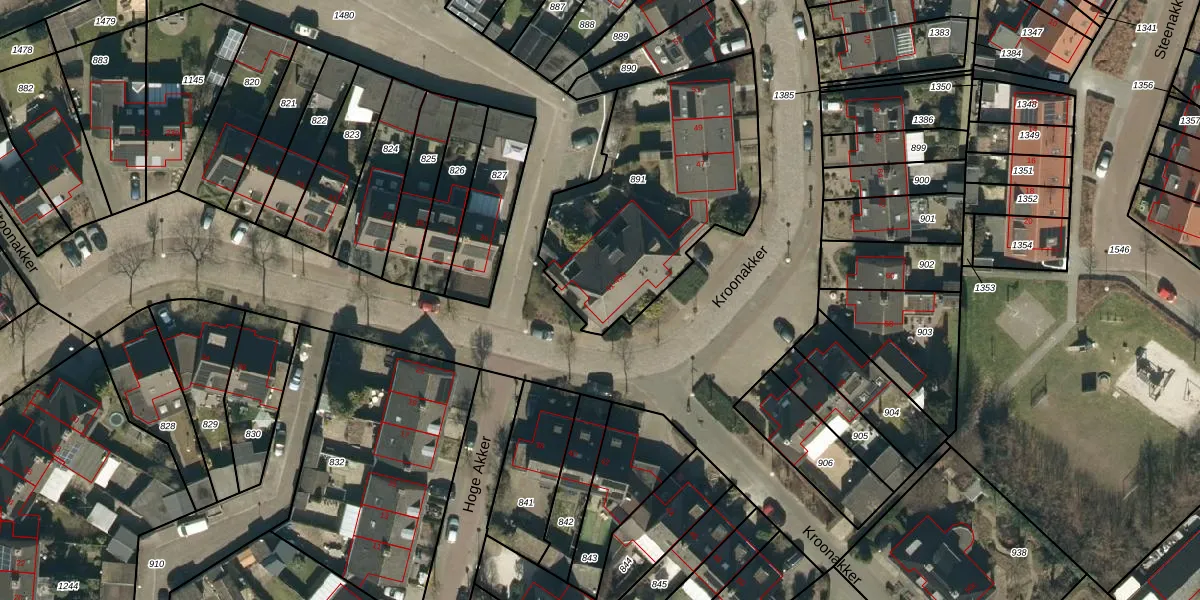 Het perceel waarop Kroonakker 41 staat heeft een oppervlakte van 1045 m². Dit is een zeer groot perceel. De perceeloppervlakte wordt geregistreerd door het Kadaster. Gedetailleerde informatie over de maten van dit perceel kunt u vinden in het rapport Kadastrale kaart met maatvoering van Kroonakker 41.