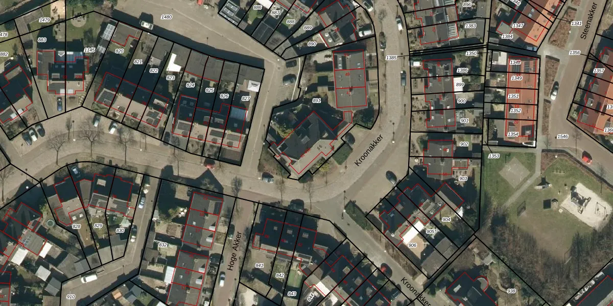 Het perceel waarop Kroonakker 43 staat heeft een oppervlakte van 1045 m². Dit is een zeer groot perceel. De perceeloppervlakte wordt geregistreerd door het Kadaster. Gedetailleerde informatie over de maten van dit perceel kunt u vinden in het rapport Kadastrale kaart met maatvoering van Kroonakker 43.