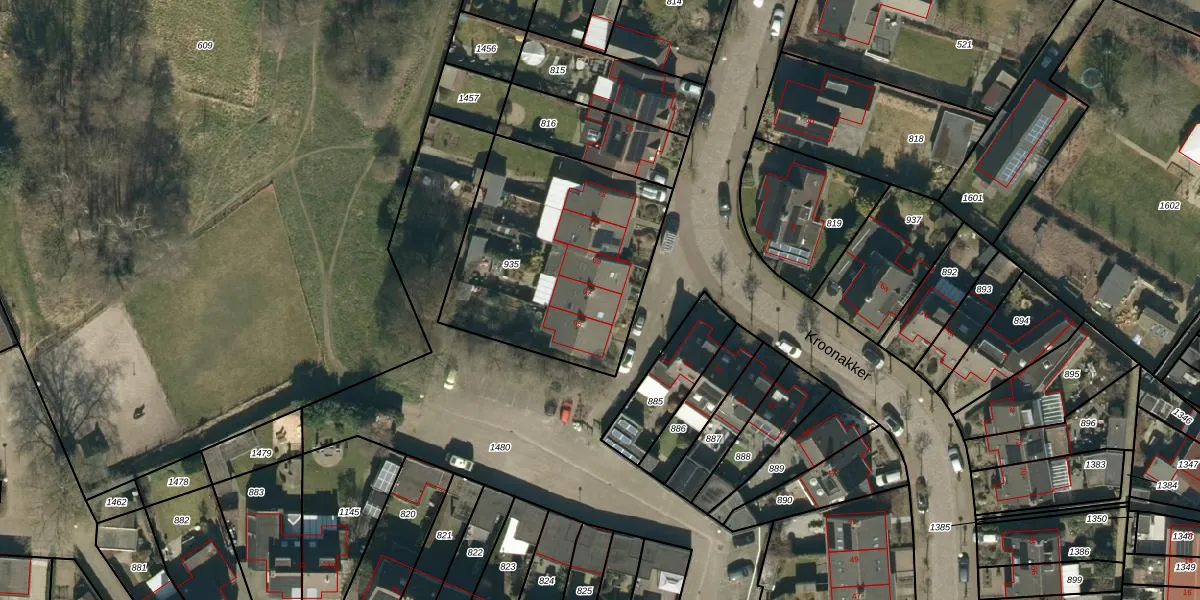 Het perceel waarop Kroonakker 67 staat heeft een oppervlakte van 1017 m². Dit is een zeer groot perceel. De perceeloppervlakte wordt geregistreerd door het Kadaster. Gedetailleerde informatie over de maten van dit perceel kunt u vinden in het rapport Kadastrale kaart met maatvoering van Kroonakker 67.