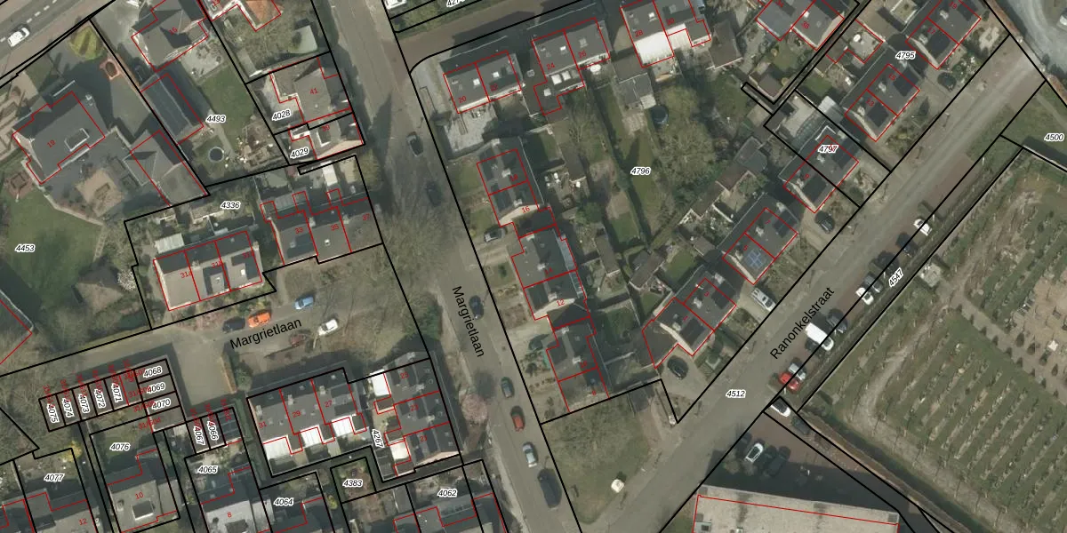 Margrietlaan 14 is gelegen op kadastraal perceel LDE01A4796. Deze kadastrale aanduiding is uniek en wordt gebruikt door het Kadaster om eigendomsrechten en andere zakelijke rechten vast te leggen. Het perceel maakt onderdeel uit van de kadastrale gemeente Leende.