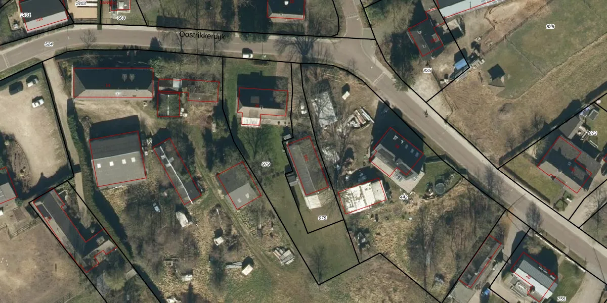 Het perceel waarop Oostrikkerdijk 16-z staat heeft een oppervlakte van 485 m². Dit is een groot perceel. De perceeloppervlakte wordt geregistreerd door het Kadaster. Gedetailleerde informatie over de maten van dit perceel kunt u vinden in het rapport Kadastrale kaart met maatvoering van Oostrikkerdijk 16-z.