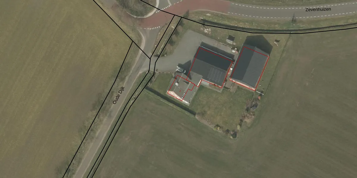 Het perceel waarop Oude Dijk 1 staat heeft een oppervlakte van 3,6 ha. Dit is een zeer groot perceel. De perceeloppervlakte wordt geregistreerd door het Kadaster. Gedetailleerde informatie over de maten van dit perceel kunt u vinden in het rapport Kadastrale kaart met maatvoering van Oude Dijk 1.