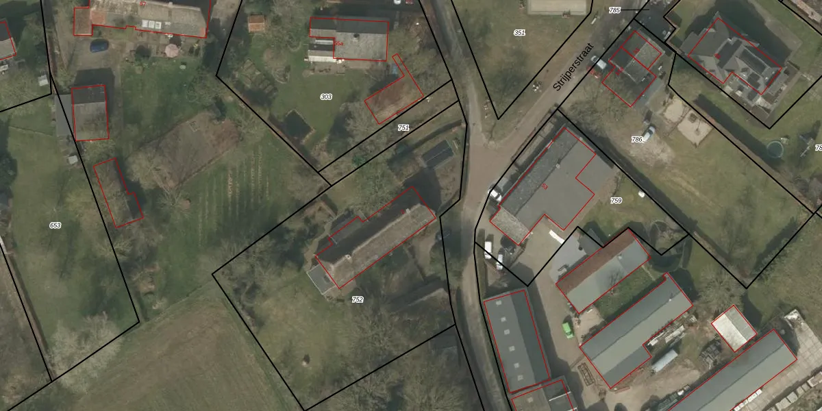 Het perceel waarop het adres ligt is LDE01-H-752. De afkorting 'LDE01' staat voor kadastrale gemeente Leende. De gemiddelde perceelgrootte in Leende is 1,2 ha. Dit perceel is kleiner: de perceeloppervlakte bedraagt 2472 m². De grootste perceeloppervlakte in de kadastrale gemeente is 6,90 km². De kleinste oppervlakte bedraagt 1 m². Er zijn geen andere adressen aanwezig op het perceel. In de Basisregistratie Kadaster (BRK) werden de grenzen van het perceel geregistreerd op 27-04-2005.