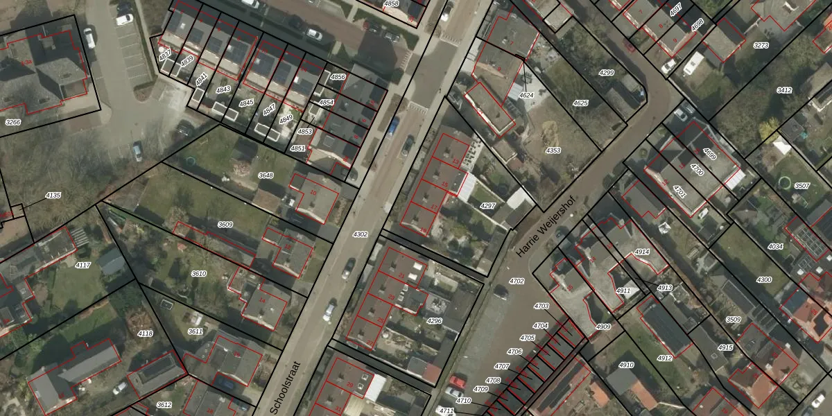 Het perceel waarop Schoolstraat 19 staat heeft een oppervlakte van 816 m². Dit is een groot perceel. De perceeloppervlakte wordt geregistreerd door het Kadaster. Gedetailleerde informatie over de maten van dit perceel kunt u vinden in het rapport Kadastrale kaart met maatvoering van Schoolstraat 19.