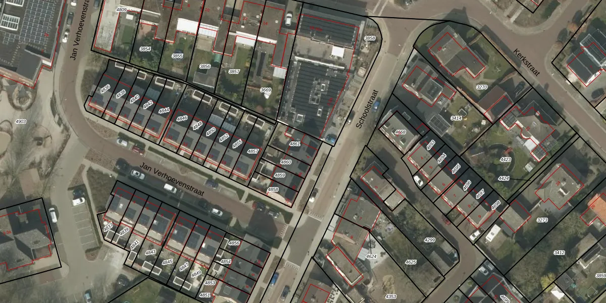 Het perceel waarop Schoolstraat 4 staat heeft een oppervlakte van 140 m². Dit is een middelgroot perceel. De perceeloppervlakte wordt geregistreerd door het Kadaster. Gedetailleerde informatie over de maten van dit perceel kunt u vinden in het rapport Kadastrale kaart met maatvoering van Schoolstraat 4.