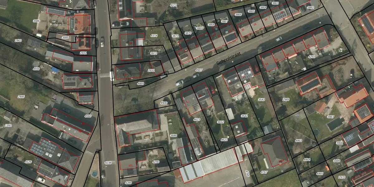 Het perceel waarop Schoolstraat 61 staat heeft een oppervlakte van 463 m². Dit is een groot perceel. De perceeloppervlakte wordt geregistreerd door het Kadaster. Gedetailleerde informatie over de maten van dit perceel kunt u vinden in het rapport Kadastrale kaart met maatvoering van Schoolstraat 61.