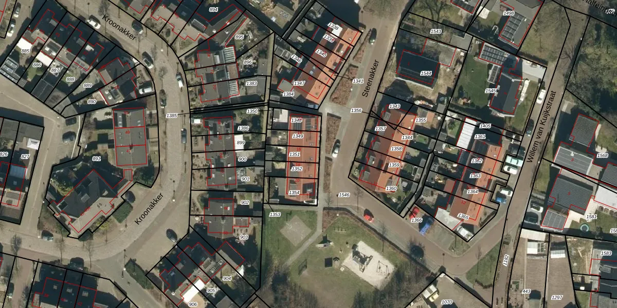 Het perceel waarop Steenakker 16 staat heeft een oppervlakte van 90 m². Dit is een klein perceel. De perceeloppervlakte wordt geregistreerd door het Kadaster. Gedetailleerde informatie over de maten van dit perceel kunt u vinden in het rapport Kadastrale kaart met maatvoering van Steenakker 16.