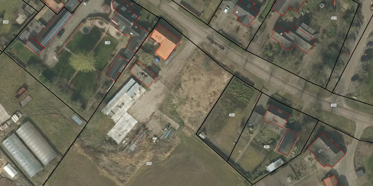 Het perceel waarop Strijperdijk 4-a staat heeft een oppervlakte van 9100 m². Dit is een zeer groot perceel. De perceeloppervlakte wordt geregistreerd door het Kadaster. Gedetailleerde informatie over de maten van dit perceel kunt u vinden in het rapport Kadastrale kaart met maatvoering van Strijperdijk 4-a.