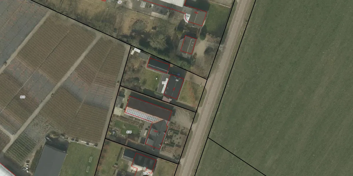 Het perceel waarop het adres ligt is LDE01-H-777. De afkorting 'LDE01' staat voor kadastrale gemeente Leende. Het perceel is 1005 m² groot. Dat is kleiner dan de gemiddelde perceeloppervlakte in Leende, dat op 1,2 ha ligt. Het kleinste perceel in de kadastrale gemeente is 1 m² groot. De grootste perceeloppervlakte is 6,90 km². Er zijn geen andere adressen aanwezig op het perceel. In de Basisregistratie Kadaster (BRK) werden de grenzen van het perceel geregistreerd op 30-11-2009.