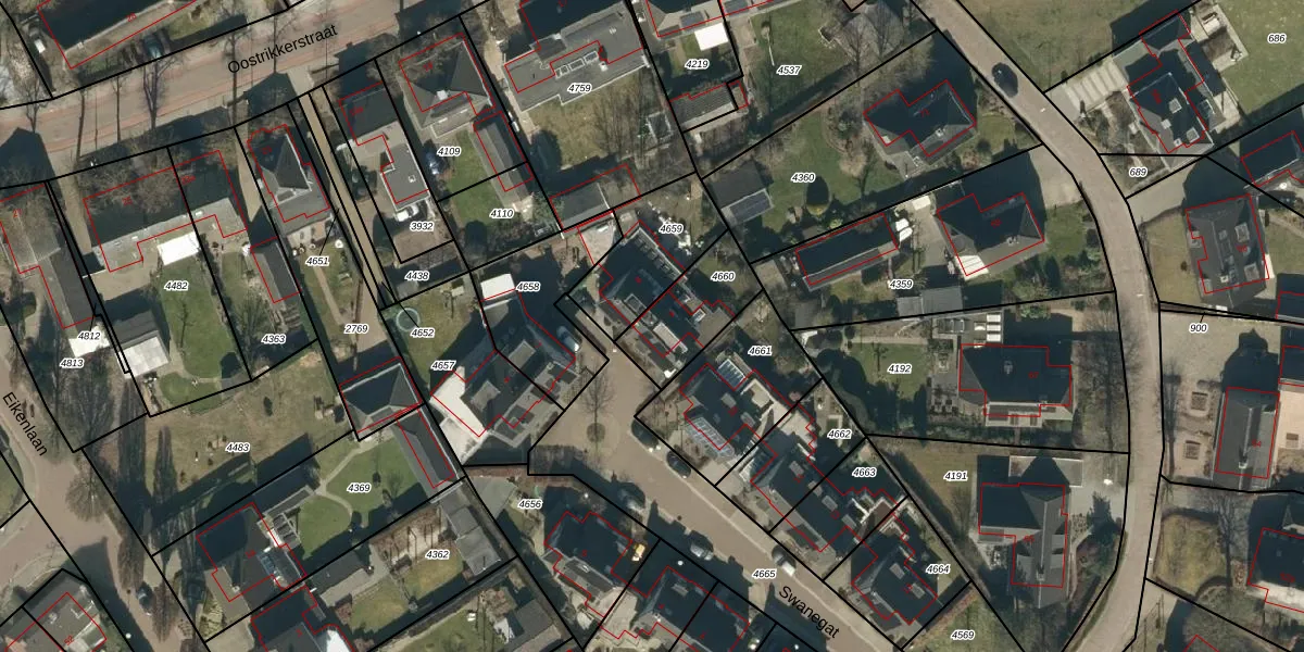 Swanegat 9 is gelegen op kadastraal perceel LDE01A4660. Deze kadastrale aanduiding is uniek en wordt gebruikt door het Kadaster om eigendomsrechten en andere zakelijke rechten vast te leggen. Het perceel maakt onderdeel uit van de kadastrale gemeente Leende.