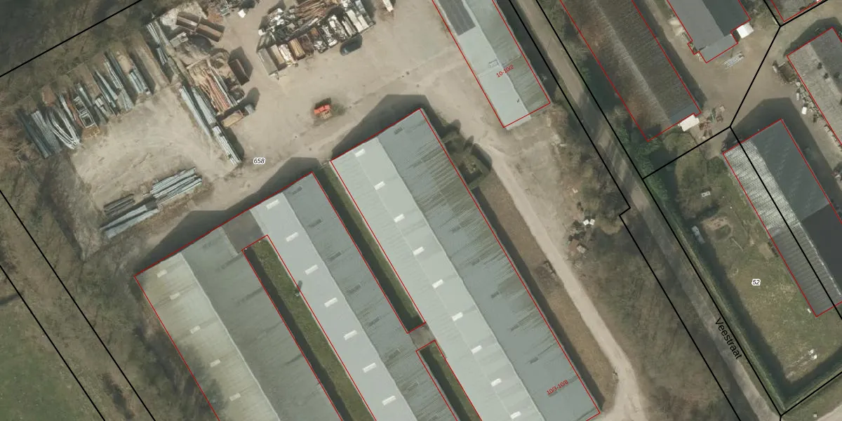 Het perceel waarop Veestraat 10-3 staat heeft een oppervlakte van 2,4 ha. Dit is een zeer groot perceel. De perceeloppervlakte wordt geregistreerd door het Kadaster. Gedetailleerde informatie over de maten van dit perceel kunt u vinden in het rapport Kadastrale kaart met maatvoering van Veestraat 10-3.