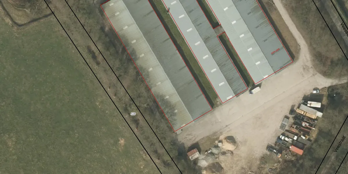 Het perceel waarop Veestraat 10-7 staat heeft een oppervlakte van 2,4 ha. Dit is een zeer groot perceel. De perceeloppervlakte wordt geregistreerd door het Kadaster. Gedetailleerde informatie over de maten van dit perceel kunt u vinden in het rapport Kadastrale kaart met maatvoering van Veestraat 10-7.