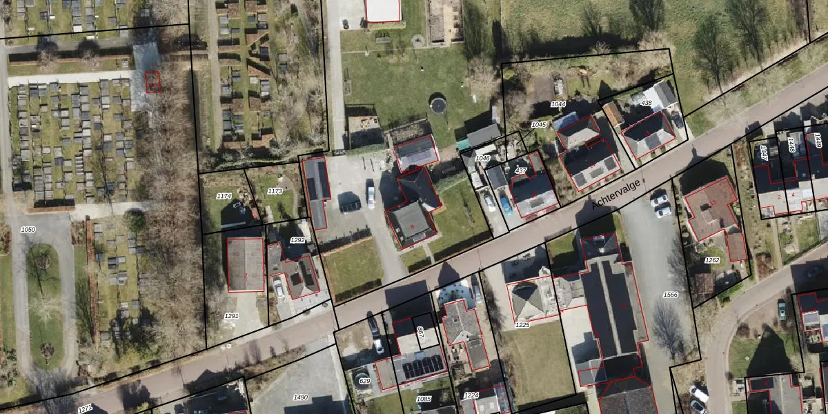 Het perceel waarop Achtervalge 8 staat heeft een oppervlakte van 1,6 ha. Dit is een zeer groot perceel. De perceeloppervlakte wordt geregistreerd door het Kadaster. Gedetailleerde informatie over de maten van dit perceel kunt u vinden in het rapport Kadastrale kaart met maatvoering van Achtervalge 8.