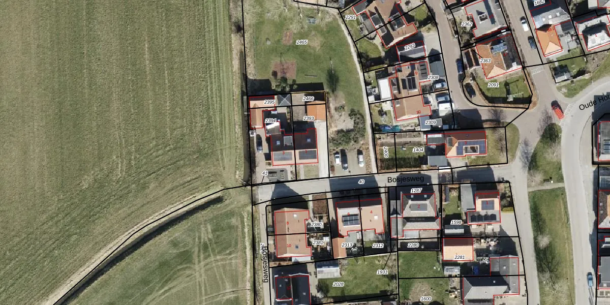 Bosjesweg 1 is gelegen op kadastraal perceel LEE02B2393. Deze kadastrale aanduiding is uniek en wordt gebruikt door het Kadaster om eigendomsrechten en andere zakelijke rechten vast te leggen. Het perceel maakt onderdeel uit van de kadastrale gemeente Leens.