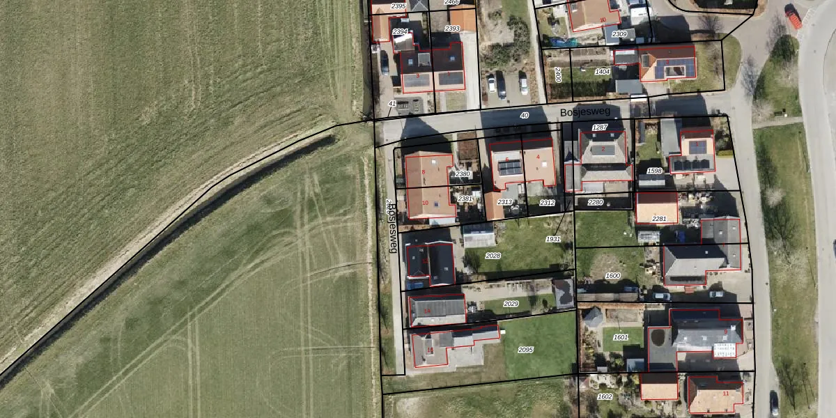 Bosjesweg 10 is gelegen op kadastraal perceel LEE02B2381. Deze kadastrale aanduiding is uniek en wordt gebruikt door het Kadaster om eigendomsrechten en andere zakelijke rechten vast te leggen. Het perceel maakt onderdeel uit van de kadastrale gemeente Leens.