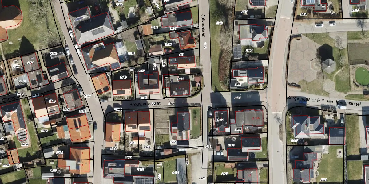Gebruik de zoekbalk of klik op een perceel voor informatie over de adressen binnen dit perceel.