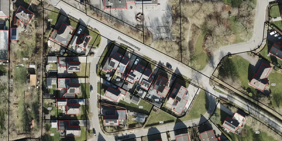 Gebruik de zoekbalk of klik op een perceel voor informatie over de adressen binnen dit perceel.