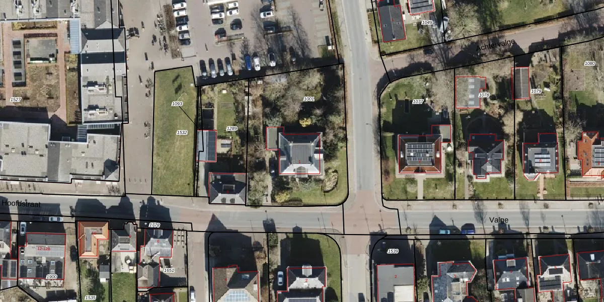 Het perceel waarop Hoofdstraat 1 staat heeft een oppervlakte van 1467 m². Dit is een zeer groot perceel. De perceeloppervlakte wordt geregistreerd door het Kadaster. Gedetailleerde informatie over de maten van dit perceel kunt u vinden in het rapport Kadastrale kaart met maatvoering van Hoofdstraat 1.