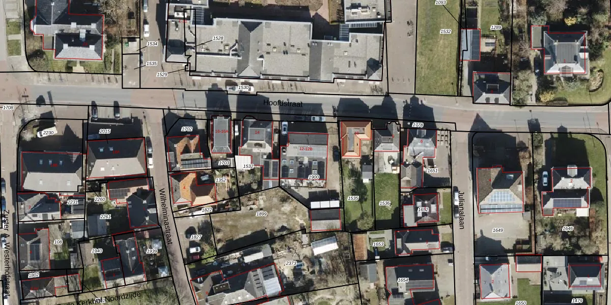 Het perceel waarop Hoofdstraat 12 staat heeft een oppervlakte van 540 m². Dit is een groot perceel. De perceeloppervlakte wordt geregistreerd door het Kadaster. Gedetailleerde informatie over de maten van dit perceel kunt u vinden in het rapport Kadastrale kaart met maatvoering van Hoofdstraat 12.